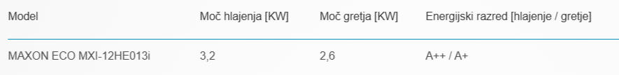 V tej ponudbi je vključena invertna klimatska naprava Maxon EKO MXI-12HE013, 3,5KW z montažo.